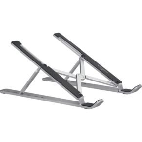 Adjustable Height Laptop Riser, 10″ x 10.5″ Platform, Silver/Black, Supports Up to 33 lbs (MNIMI7271)
