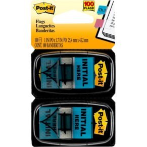 Post-it Printed Flags, “Initial Here”, 1″ x 1-11/16″, Bright Blue, 50 Flags Per Pad, Pack Of 2 Pads (MMM680IH2)