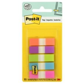 Post-it Notes Flags, 1/2″ x 1-7/10″, Assorted Bright Colors, 20 Flags Per Pad, Pack Of 5 Pads (MMM6835CB2)
