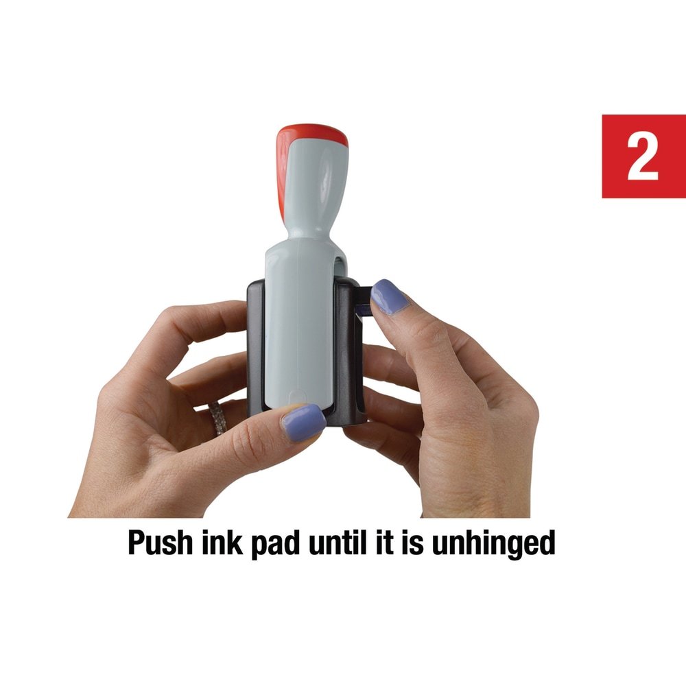 - Cartridge-style ink pad with water-based blue/red ink.