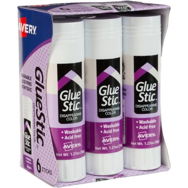 Avery Glue Stic Disappearing Purple Glue Sticks, 1.27 Oz., Pack Of 6