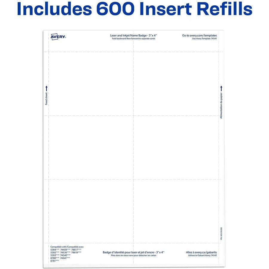 Product LineAvery Name Badge Insert Refills, 3″ x 4″