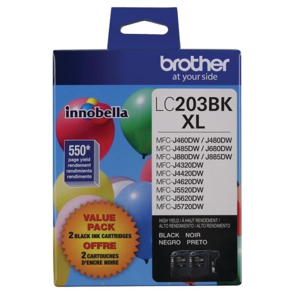 Brother LC203 Black High-Yield Ink Cartridges, Pack Of 2, LC2032PKS (BRTLC2032PKS)