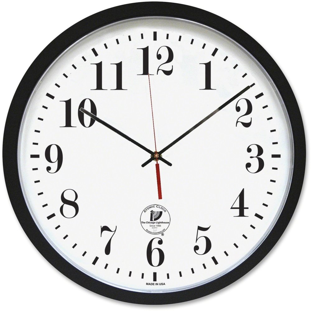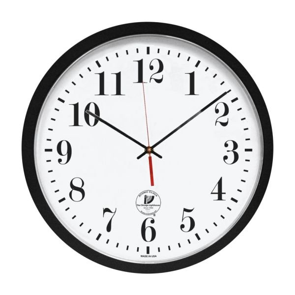 Chicago Lighthouse 16.5″ Atomic Wall Clock – Analog – Atomic – White Main Dial – Black/Plastic Case – Contemporary Style – Black Finish