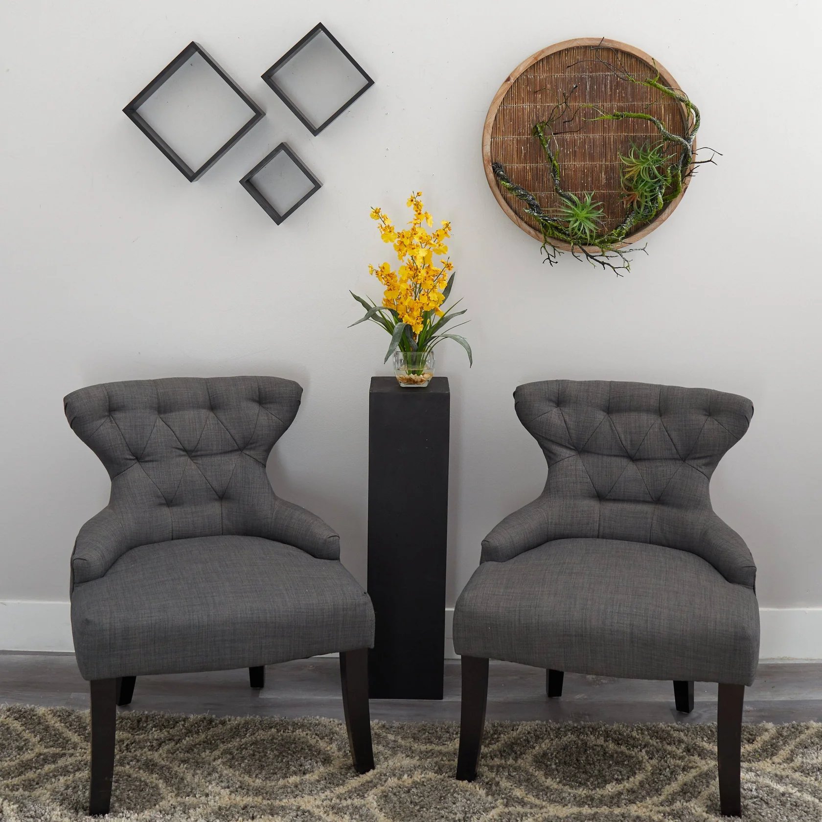 With its winding stems and curvy stalks, it’s easy to see why this member of the Orchid family is called the “Dancing Lady”. These beautiful and unique orchids rest snugly in a short oval-shaped glass container, which is filled with artificial water and an abundant supply of river rock to compliment its appeal. This extraordinary arrangement is the perfect way to spice up any room or office space.