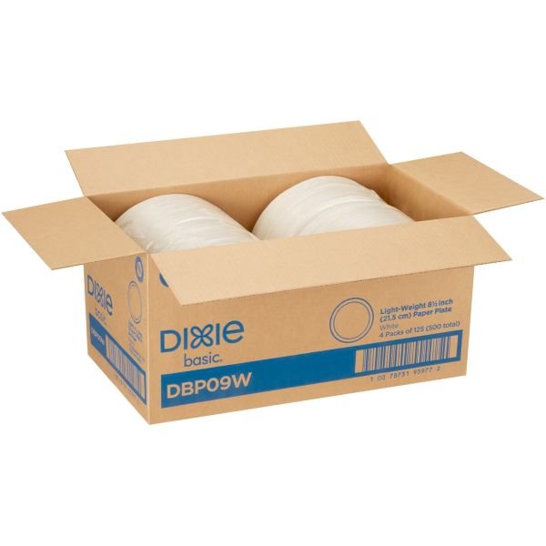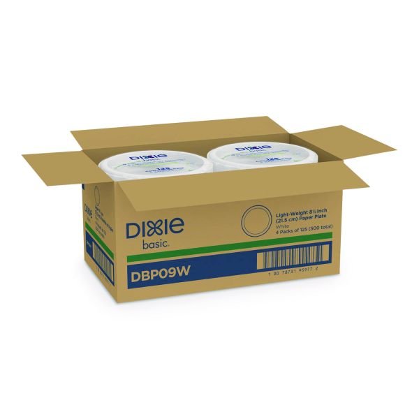 Dixie Paper Dinnerware, Plate, 8.5″ dia, White, 125/Pack, 4/Carton (DXEDBP09WCT)