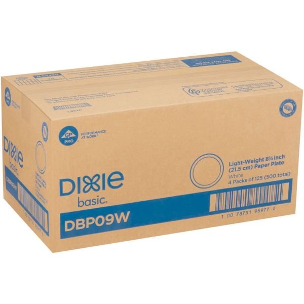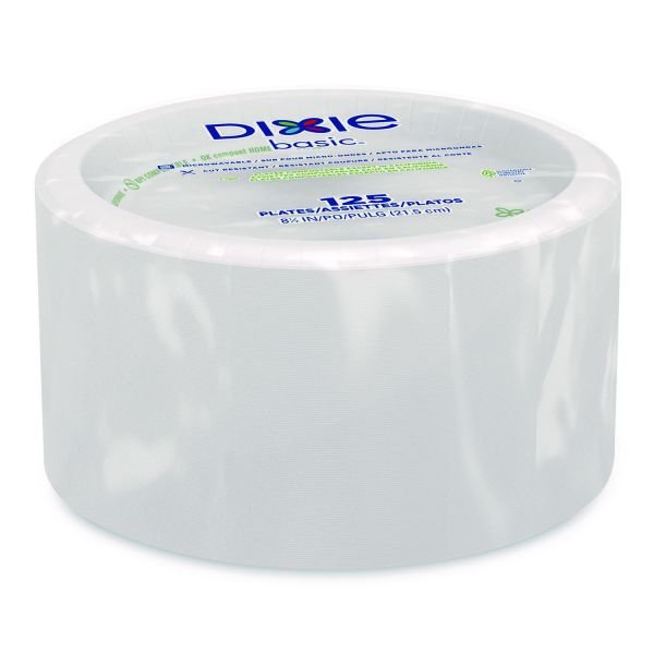 Dixie Paper Dinnerware, Plate, 8.5″ dia, White, 125/Pack, 4/Carton