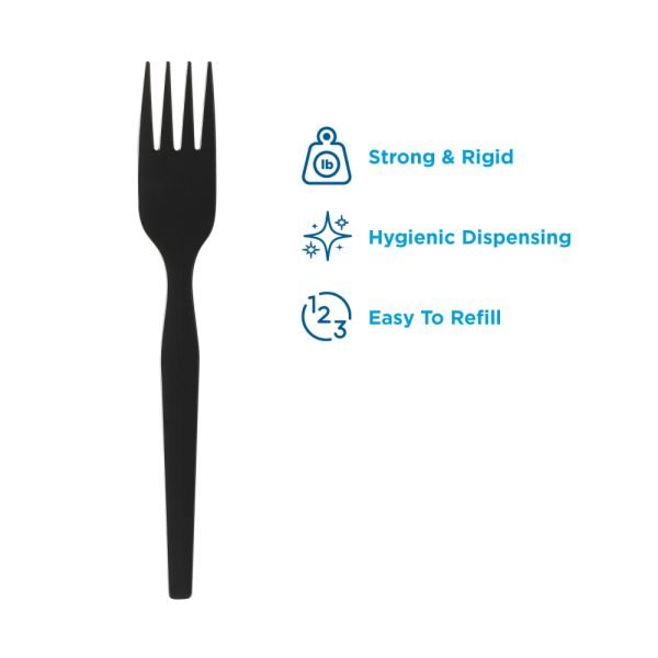 Dixie SmartStock Plastic Cutlery Refill, Series-O, Mediumweight Fork, Black, 40/Pack, 24 Packs/Carton