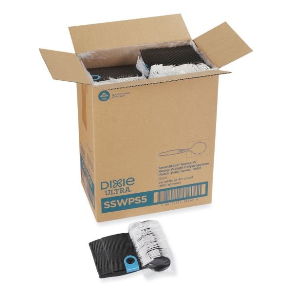 Dixie SmartStock Wrapped Heavyweight Cutlery Refill, Soup Spoon, Plastic, Black, 960/Carton (DXESSWPS5)