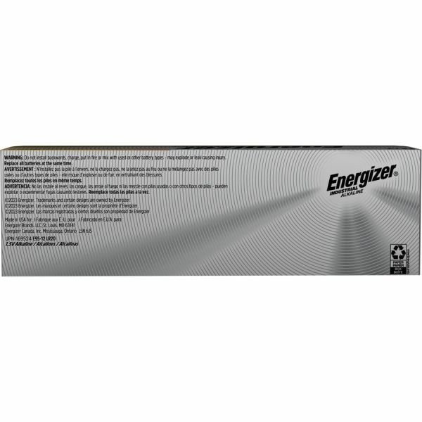 Marketing InformationEnergizer Industrial Alkaline D Battery offers an economical, high rate source of portable power for today’s devices that require heavy current or continuous use. Each battery provides four to nine times more energy than similar-sized carbon zinc batteries.