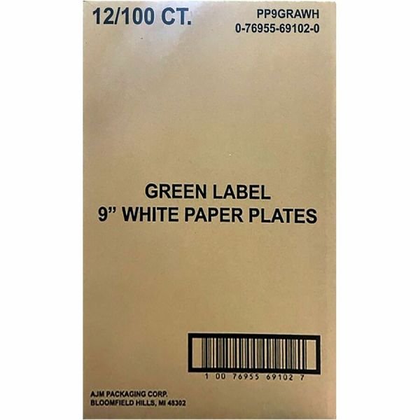 Green Label 9″ Green Label Economy Paper Plates (AJMPP9GRA)