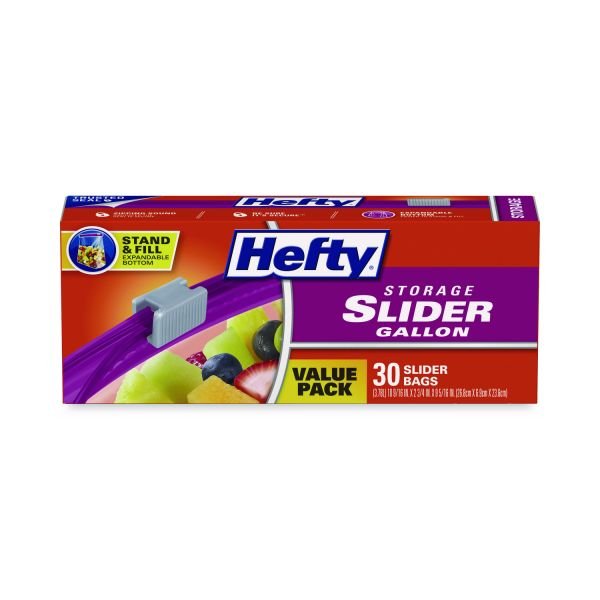 Hefty Slider Stand and Fill Food Storage Bags, Gallon, 10.56″ x 11″, Clear, 30 Bags/Box, 9 Boxes/Carton