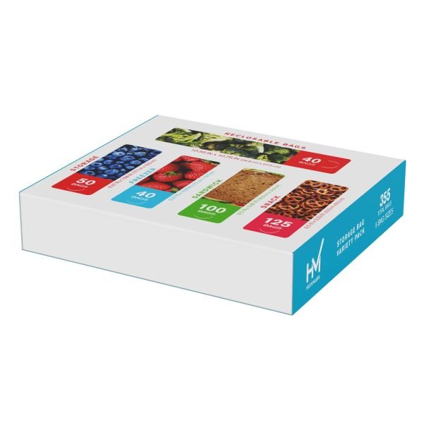 - Comprehensive Variety: 355 bags in quart, gallon, sandwich, and snack sizes to meet all your storage needs. Includes 125 snack-size bags, 100 sandwich-size bags, 50 quart-size bags, 40 quart-size freezer bags, and 40 gallon-size bags.
