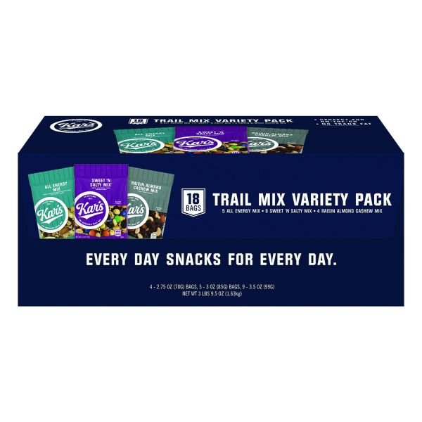 Kar’s Trail Mix Variety Pack, Assorted Flavors, 18 Bags/Carton