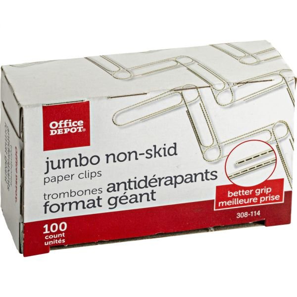 Non-Skid Paper Clips, Jumbo, Silver, Pack Of 10 Boxes, 100 Clips Per Box, 1,000 Total (ODFN308114)