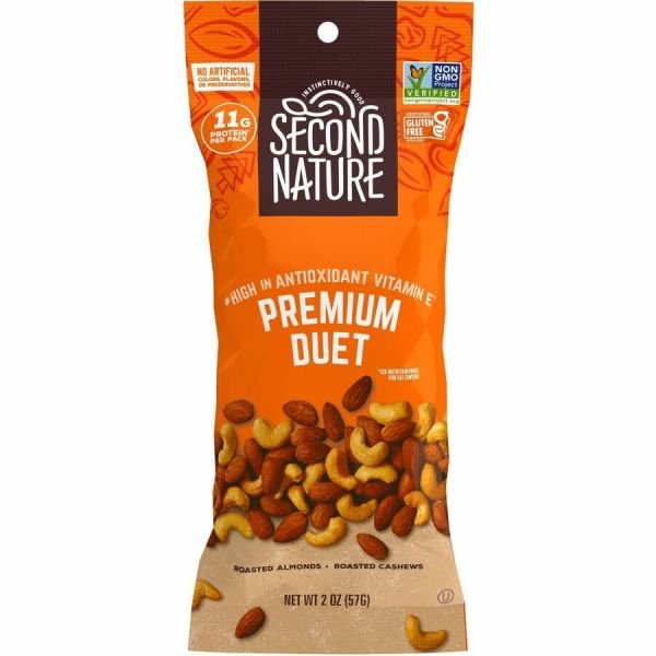 Premium Duet Trail Mix offers carefully selected, whole cashews and almonds that have been gently roasted and lightly salted. This snack is low in sodium per 1.0 oz. serving. Trail mix is perfect for keeping in breakrooms, reception areas and kitchens to boost office morale or impress visitors.