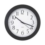 - Digital wall clock measures 8″ x 7″ and comes in black.