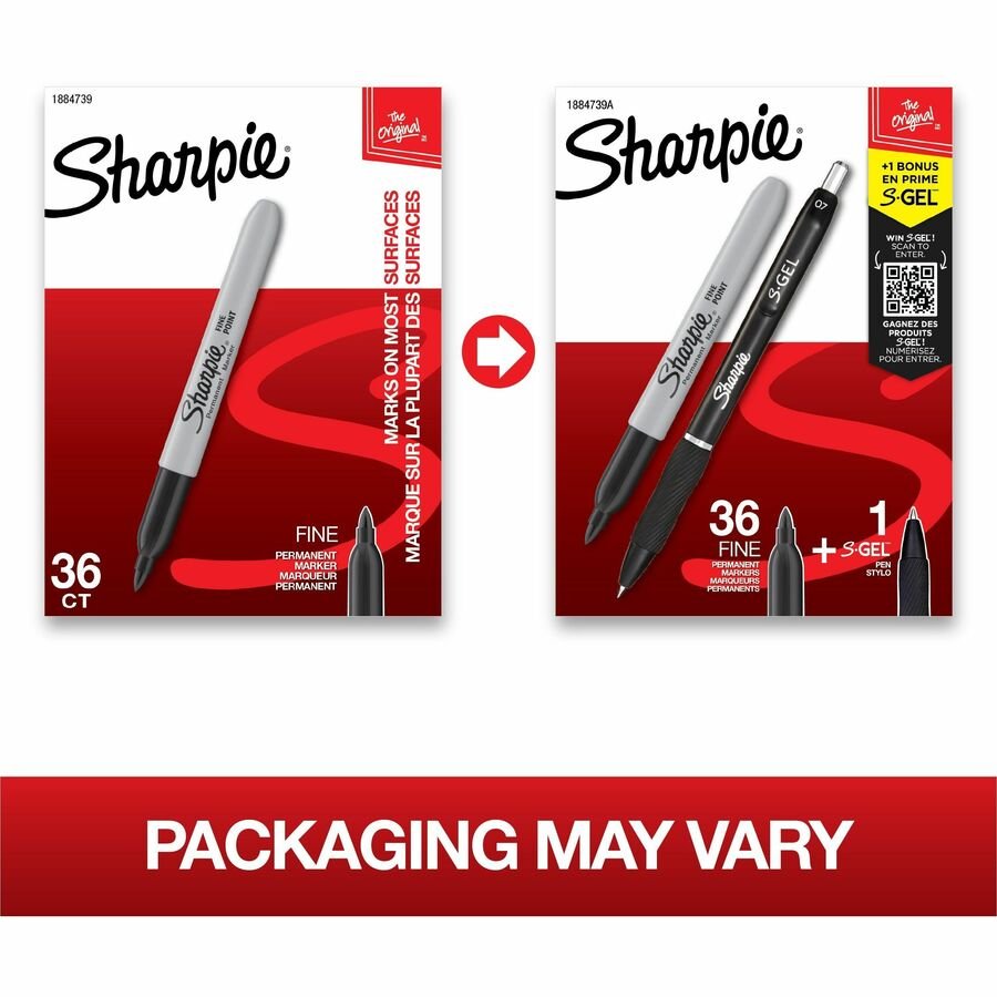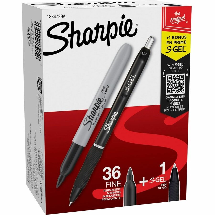 Sharpie Fine Tip Permanent Marker Value Pack with (1) Bonus S-Gel 0.7 mm Black Ink Pen, Fine Bullet Tip Markers, Black Ink, 36/Pack (SAN1884739A)