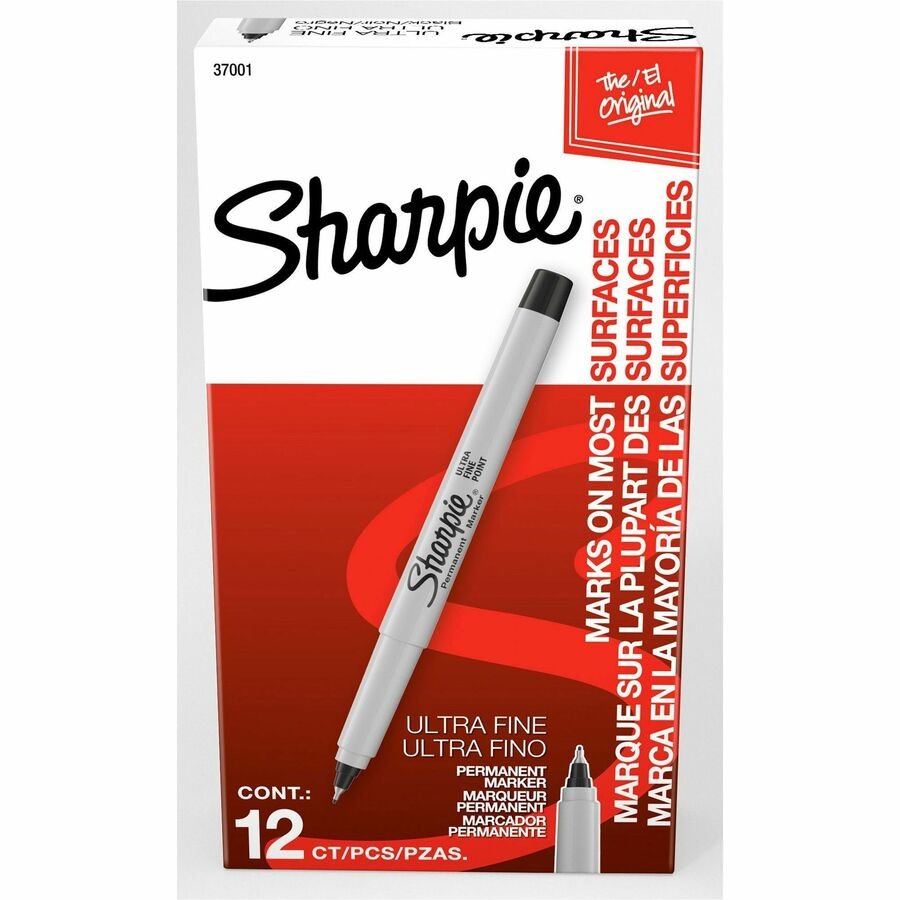 Sharpie Permanent Ultra-Fine Point Markers, Black, Pack Of 12 Markers (SAN37001)
