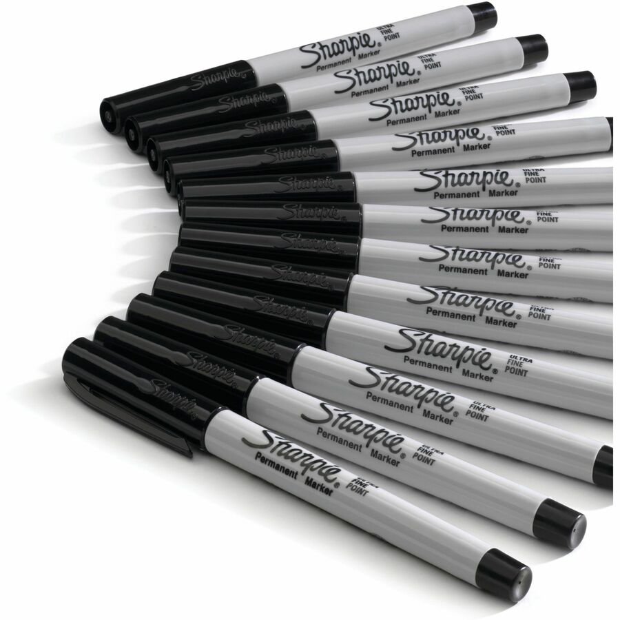 Sharpie Permanent Ultra-Fine Point Markers, Black, Pack Of 12 Markers