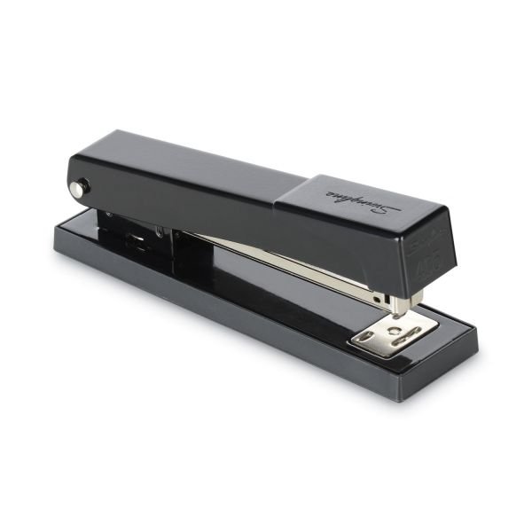 Keep loose pages and reports neat and bound with this black Swingline light-duty full-strip desktop stapler. The 20-sheet stapling capacity meets everyday stapling needs and helps you manage multipage documents, while the sturdy metal framework offers durability. Open up the stapler fully to easily tack documents on walls or bulletin boards. This Swingline light-duty full-strip desktop stapler accommodates up to 210 staples for near-uninterrupted use.