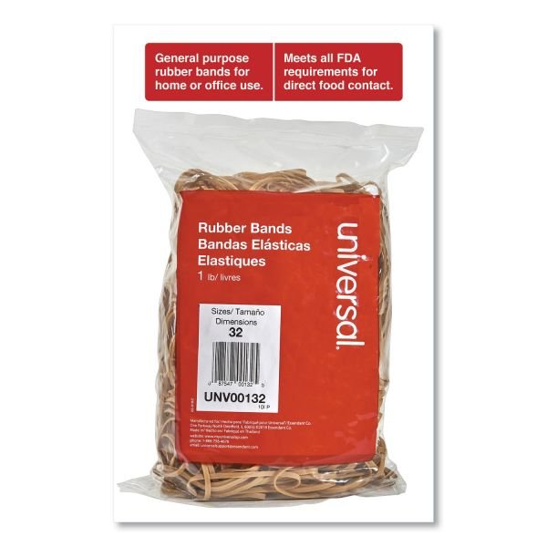 Universal Rubber Bands, Size 32, 0.04″ Gauge, Beige, 1 lb Box, 820/Pack (UNV00132)