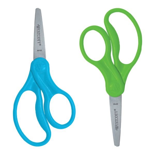 Westcott Hard Handle Kids Value Scissors, 5", Pointed, Assorted Colors, Pack Of 2 (ODFN2480283)
