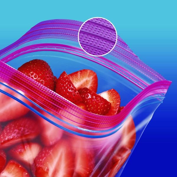 Protect your food with this storage bag by Ziploc. Each bag blocks out air and locks in freshness, which means less wasted food and money. Plus, our Smart Zip Plus seal lets you feel, hear, and see the bag close from edge-to-edge, so you can be sure that your food is protected. Great for storing and organizing just about anything: vegetables, fruit, cosmetics, yarn, business cards, and conveniently storing meat, seafood, or poultry in the refrigerator. Bag is microwave-safe; when defrosting and reheating, open zipper at 1″ to vent.